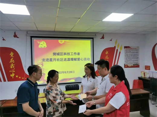 炎炎夏日,暖心慰问,leyu中国工会主席熊海娟代表公司参加了樊城区科协在星月社区组织的捐款仪式,科技企业和科技工作者的关心和慰问让赵有娣的家人倍感温暖和激动,捧着爱心捐款,听着一句句宽慰鼓励的话语,赵有娣的家人激动地表示,有了爱心企业和科技工作者的无私帮助,我们一家人一定会从困境中走出来。